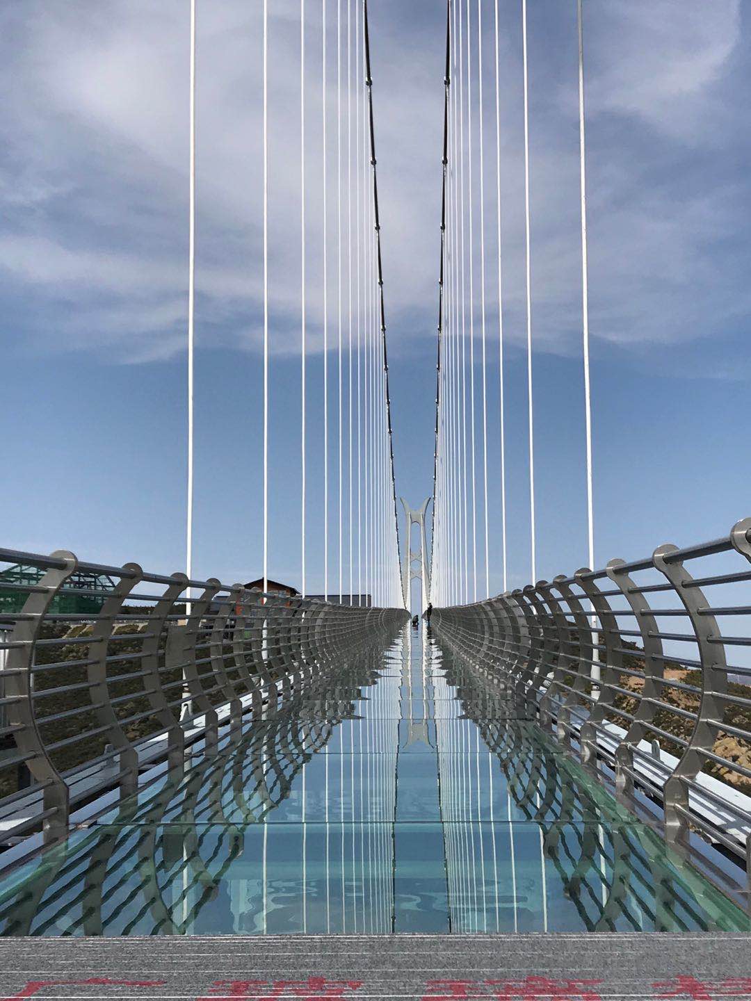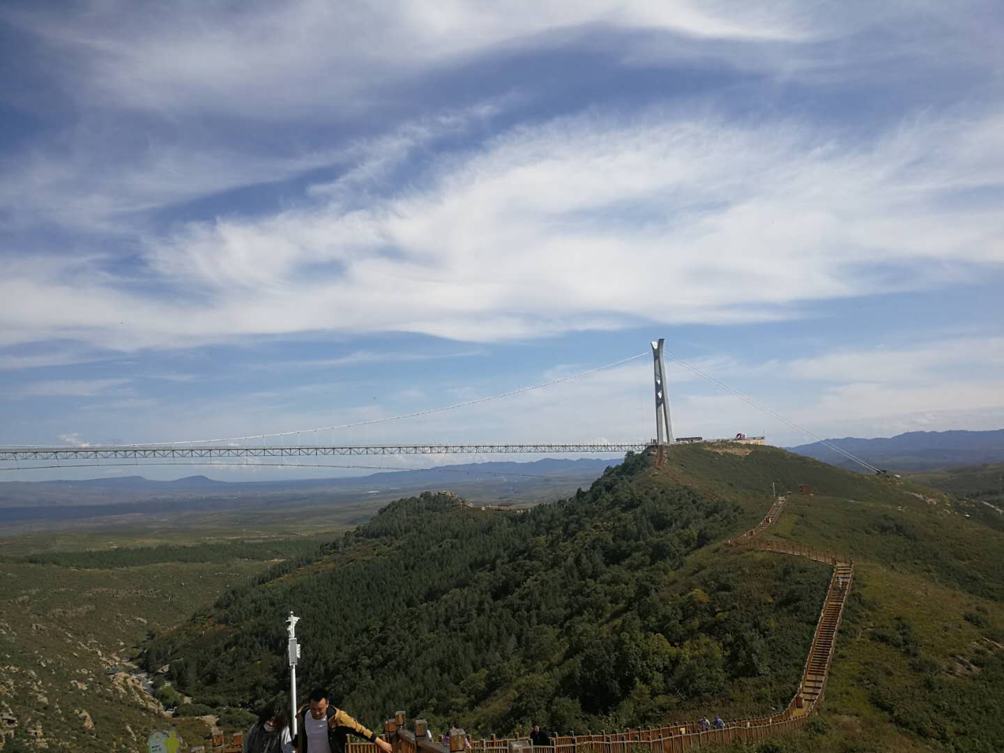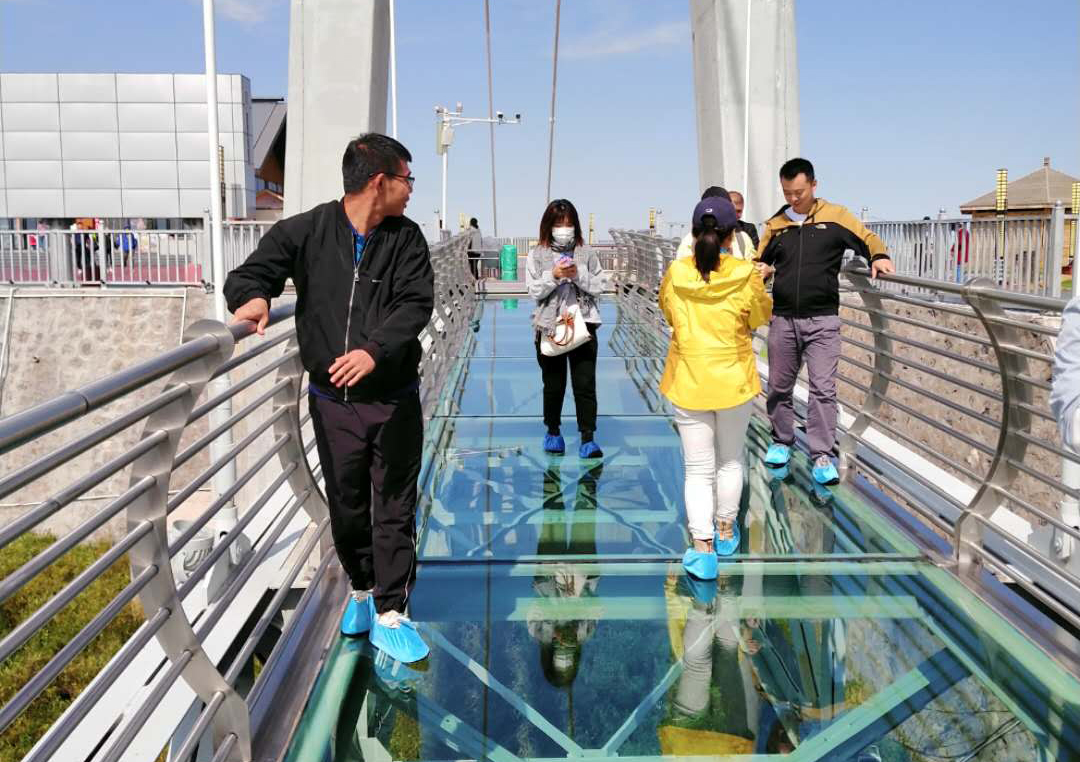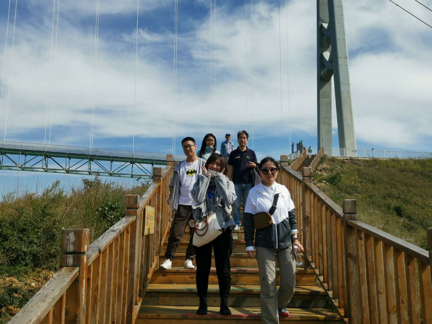 14日下午游覽車載著一行人行駛在山間的小路上,清風(fēng)徐徐,好不愜意,接著迎來(lái)了全長(zhǎng)639米的玻璃棧道挑戰(zhàn),驚心動(dòng)魄,姿態(tài)百出。